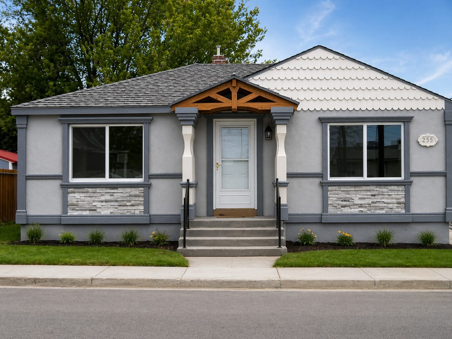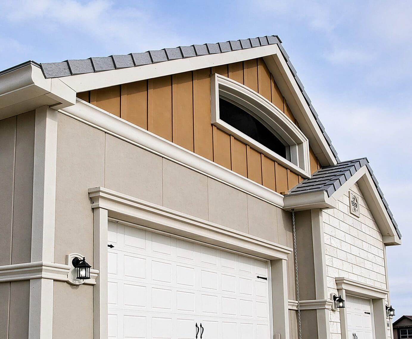 Our residential project gallery showcases real-world applications featuring insulated siding panels, faux wood beams, gable vents, trims, and architectural details—each designed to enhance curb appeal while delivering lasting performance.