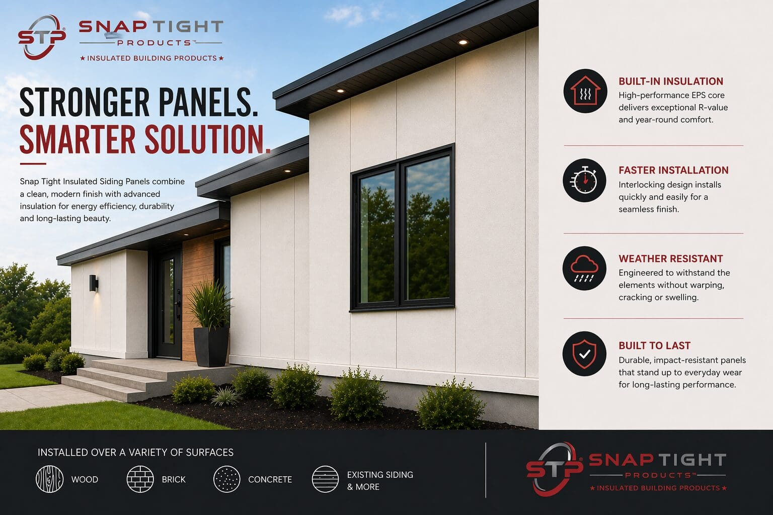 Transform your project with SnapTight’s Prefabricated Insulated Siding Panels—delivering performance, efficiency, and lasting value with every install.