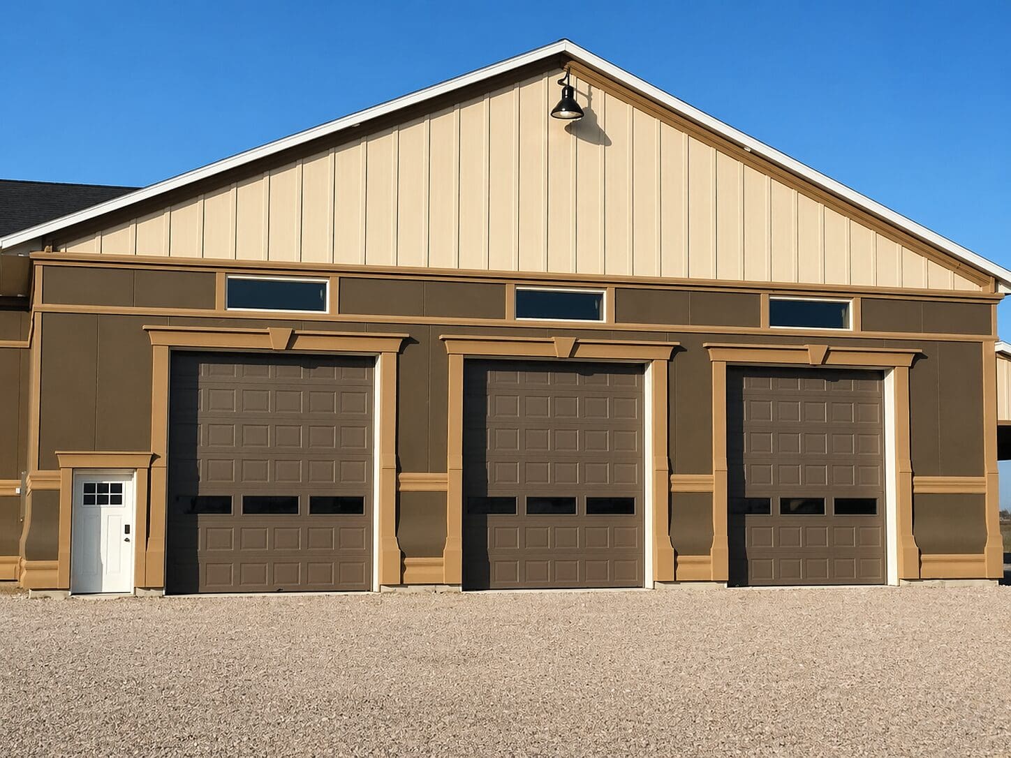 For added style, our Board ‘n’ Batten panels offer a classic design with a contemporary twist. Boards fasten with screws while battens snap into place to conceal them, ensuring a clean, professional look. Available in stucco or smart siding finishes, these panels provide instant curb appeal while requiring minimal upkeep.